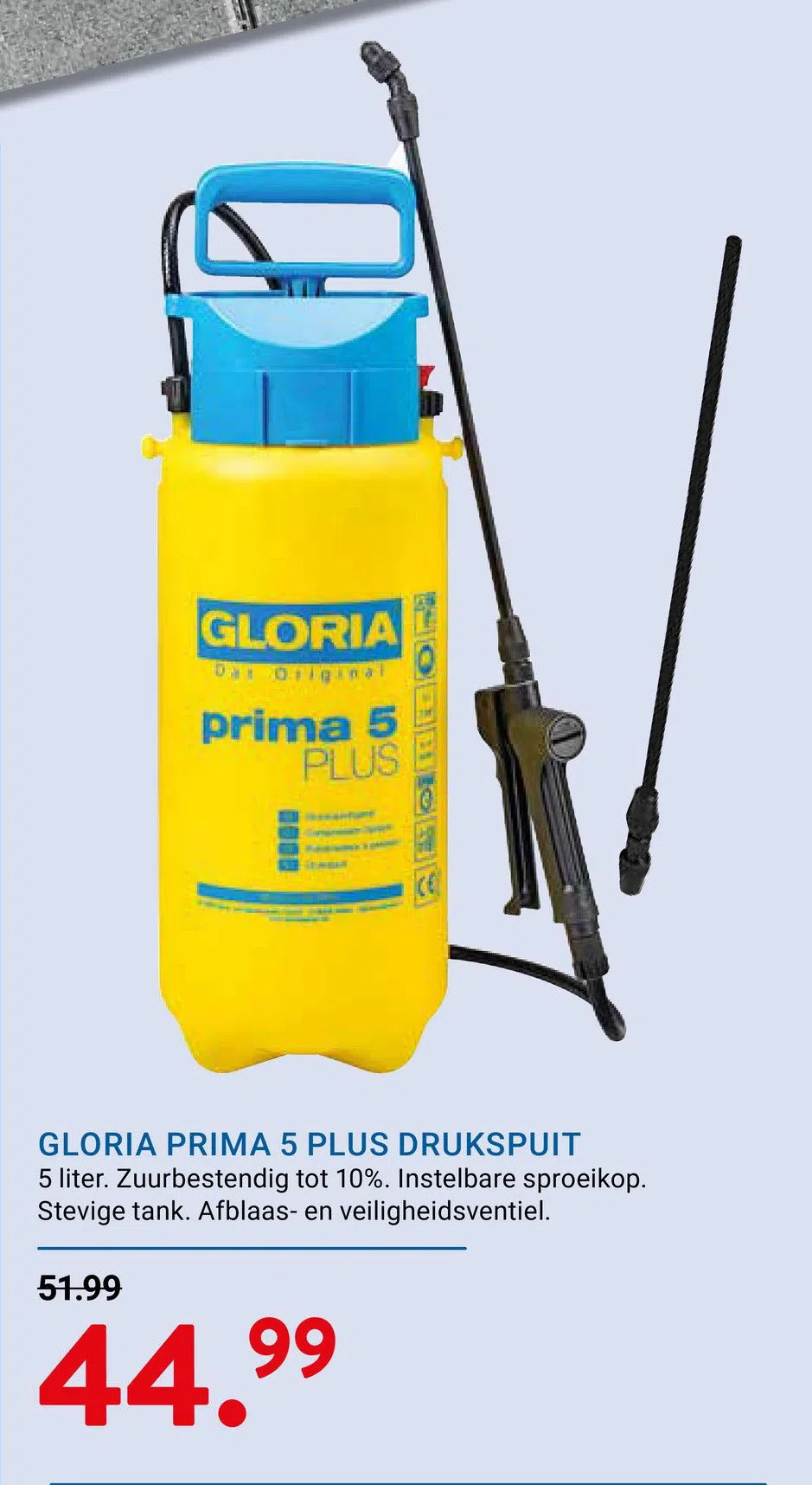 Gloria prima 5 plus drukspuit aanbieding bij Kluswijs