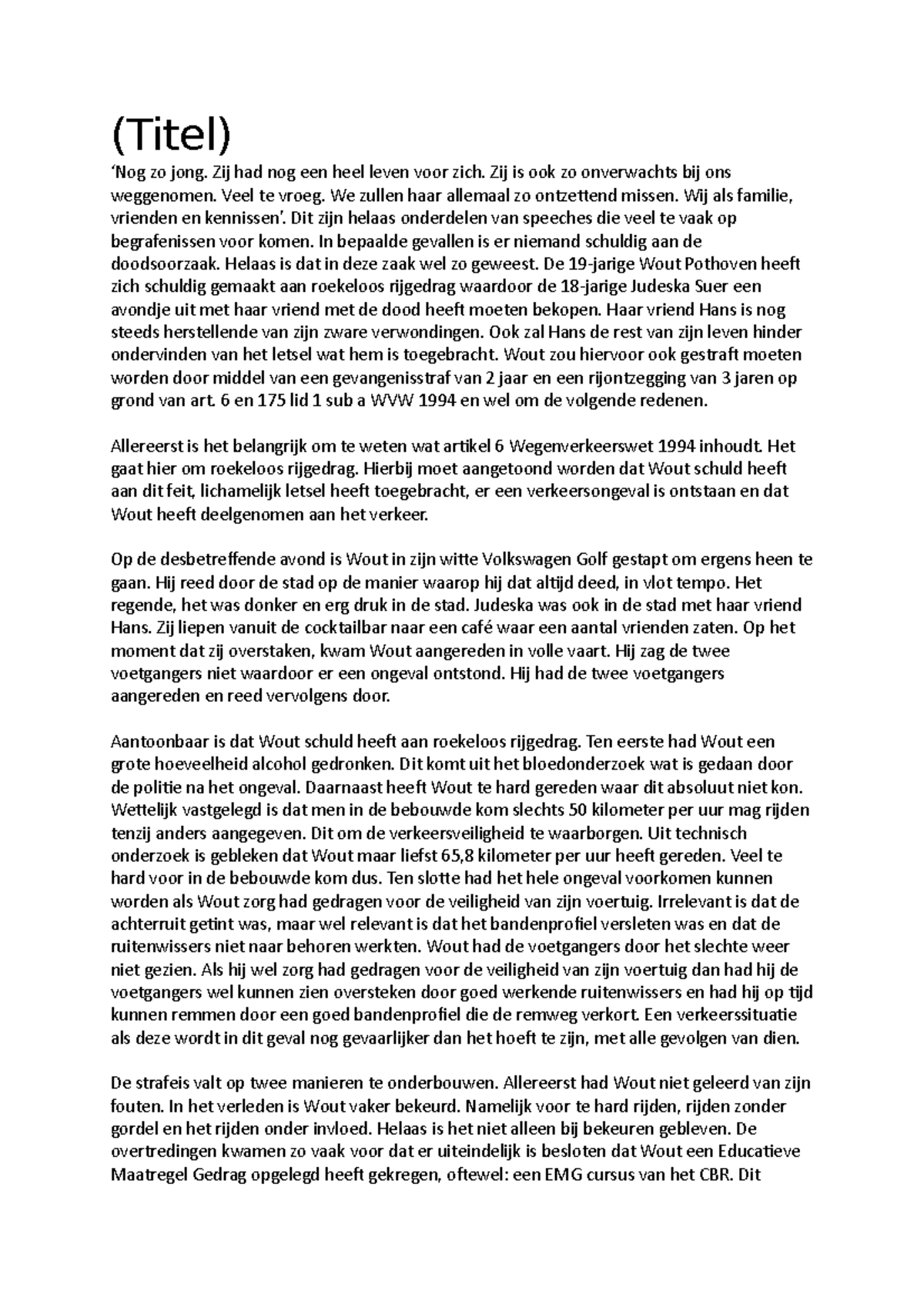 Argumenteren betoog (Titel) ‘Nog zo jong. Zij had nog een heel leven voor zich. Zij is ook zo