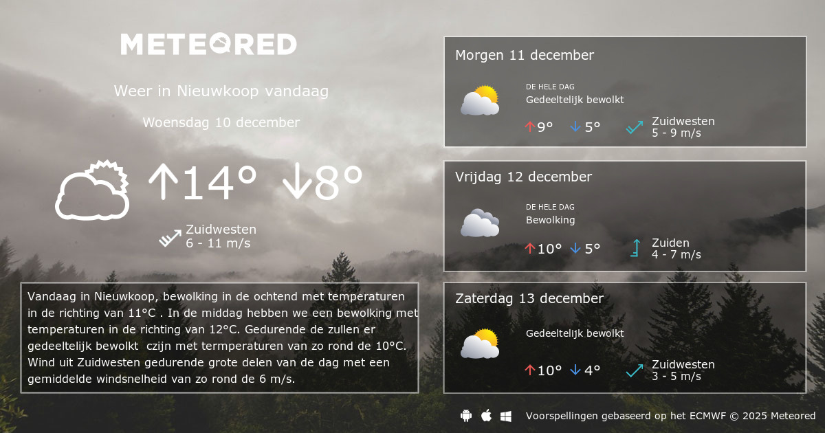 Weer Nieuwkoop. Alle weerinformatie voor Nieuwkoop. Bekijk eenvoudig de 14-daagse weersverwachting voor Nieuwkoop bij Meteovista. Weer 14 dagen vooruit Actueel weerbericht.