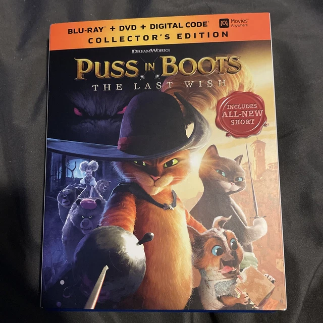 Shop Puss in Boots: The Last Wish [Includes Digital Copy] [Blu-ray/DVD] [2022] at Best Buy. Find low everyday prices and buy online for delivery or in-store pick-up.. Puss in Boots: The Last Wish [Includes Digital Copy] [Blu-ray/DVD] [2022] UPC. 191329229019. Reviews. User rating, 4.8 out of 5 stars with 77 reviews. (77) Customer reviews. 4.8.
