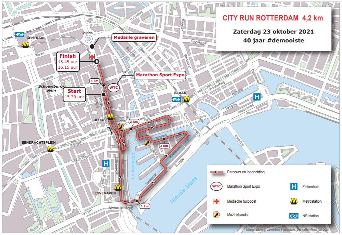 During the weekend of the NN Marathon Rotterdam, the city is closed in many places. Rotterdam Onderweg offers a clear overview of the various closures in the city on 12, 13 and 14 April 2024.. - To the start: metro station Beurs Travel advice 1/4 marathon runners - Bag deposit at Schouwburgplein: Rotterdam Central Station - To the start.