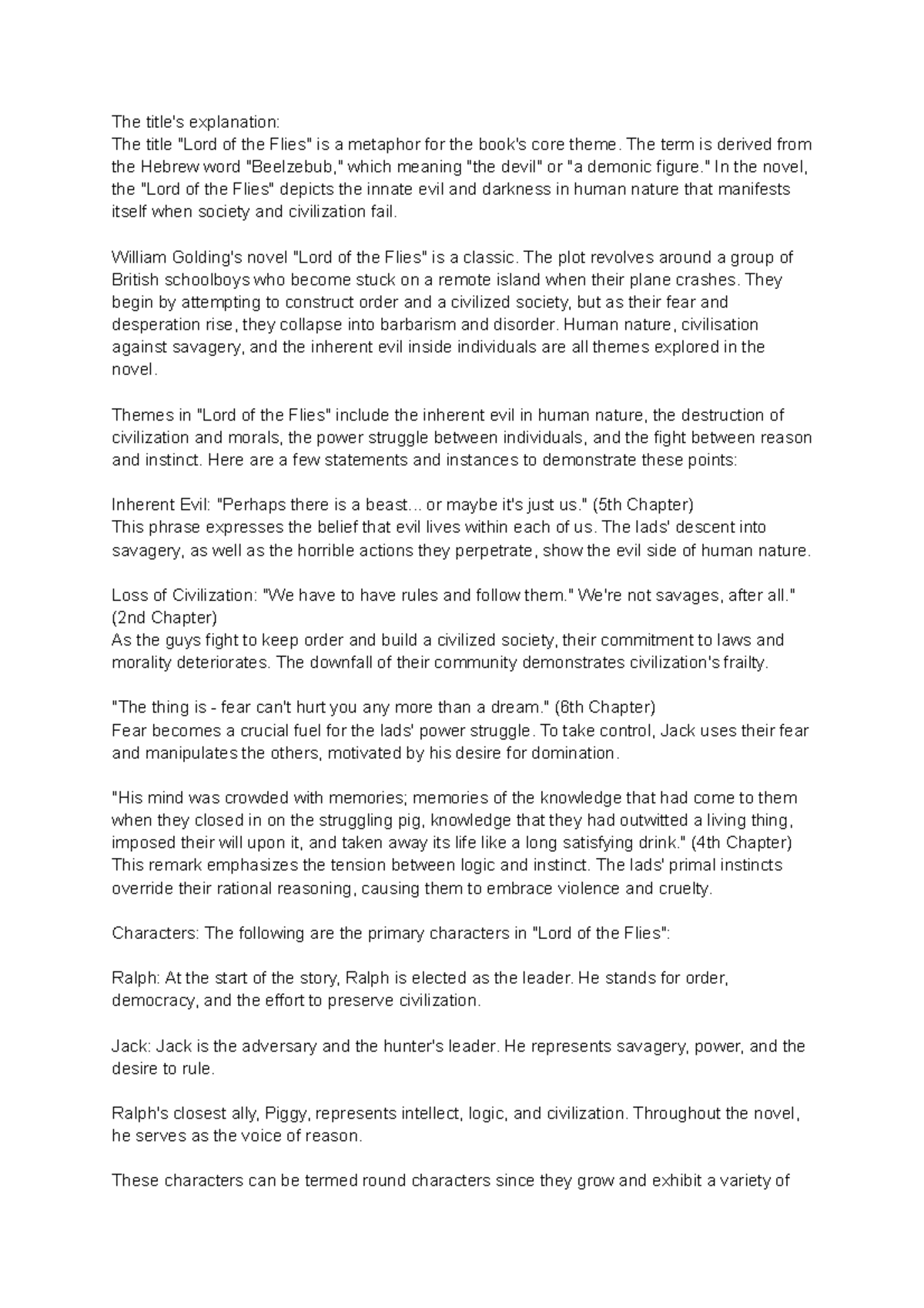 Lord of the Flies samenvatting en opdracht The title's explanation The title "Lord of the