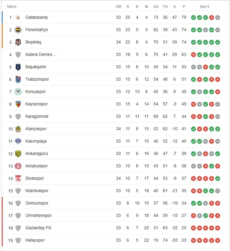 Süper Lig'de sezonun ne zaman biteceği futbolseverlerin merak ettiği konu oldu. Galatasaray ve Fenerbahçe'nin liderlik ipini göğüslemek için kıyasıya yarıştığı ligde, 32. hafta maçları geride kaldı. Peki, Süper Lig ne zaman bitiyor? 17.04.2024 - 19:03. Haberler - ntv.com.tr.
