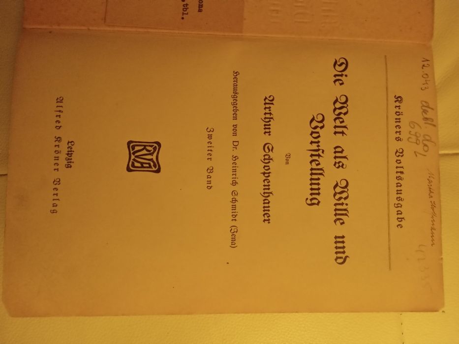 A. Schopenhauer, Świat jako wola i przedstawienie, t. I i II Antykwariat Domowy